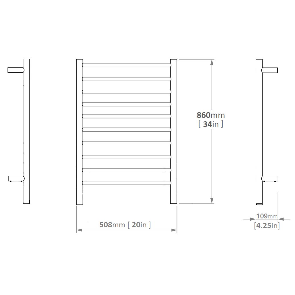 Nature Electric Heated Towel Dryer / Warmer Rail Matt Black 34 Inch 10 Bars 500010026MB